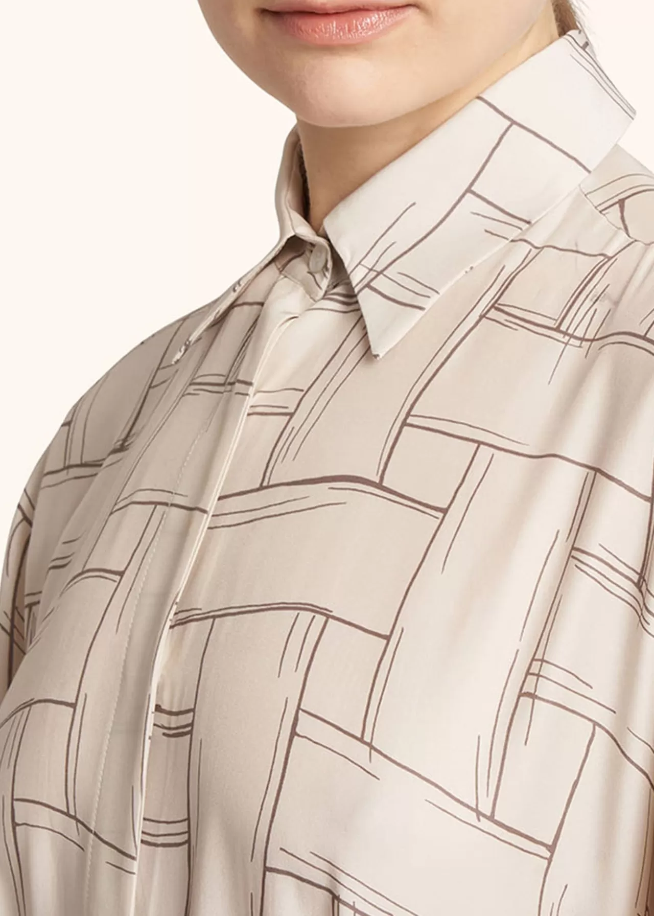 Long Ivory Shirt Dress In Fine Silk Fabric With A Geometric Print In Brown Tones, Which Has Been Entirely Cut And Sewn By Our Master Artisans In Naples. This Dress Has A Front Fastening With Buttons In Australian Pinctada Maxima Mother-Of-Pearl Hidden Behind A Placket Placed At The Centre Of The Garment. The Dress Is Further Enhanced By The Decorative Self Belt, Which Can Be Used As A Light Scarf If Desired. The Height Of Elegance And Sophistication, This Kiton Dress Is Perfect For Formal Occasions. It Speaks To Refined Women With Strong, Passionate Character, Attentive Connoisseurs Of Sartorial Traditions. It Marks The Return Of The Magic Of An Item Of Clothing That Is Worn For The Delight Of Dressing To Please Yourself, As If It Were A Second Skin. Self Pampering In The Name Of Tactile And Visual Indulgence. To Maintain The Beauty Of Your Kiton Garment, We Recommend Professional Laundering And Pressing.